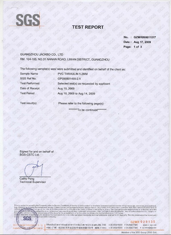 防水膜認證證書-物理性能1
